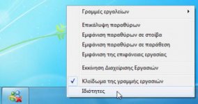 Κάντε δεξί κλικ στο Taskbar και επιλέξτε ιδιότητες
