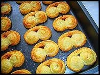 Ξετυλίξτε τη μεμβράνη από τη ζύμη και κόβετε σε ροδέλες ενός εκατοστού. Βάζετε τις ροδέλες ζύμης σε ένα ταψί με λαδόκολλα και ψήνετε στους 200 βαθμούς για 10 - 15 λεπτά.